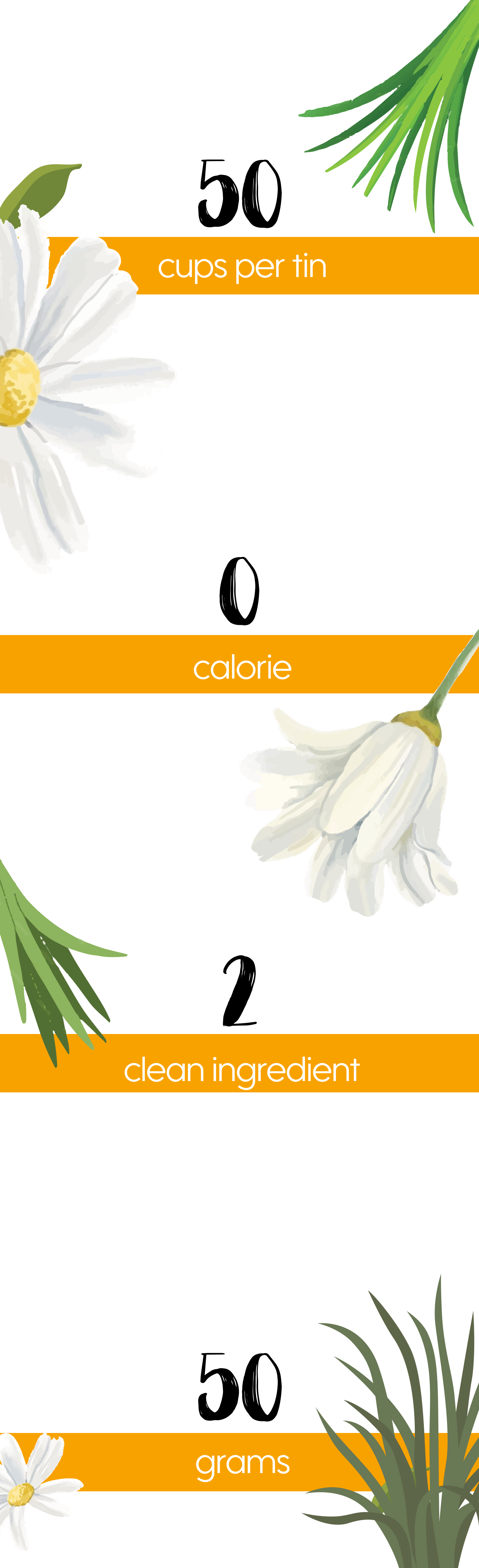 Whole Chamomile Flowers, Dried Lemongrass Leaves.
